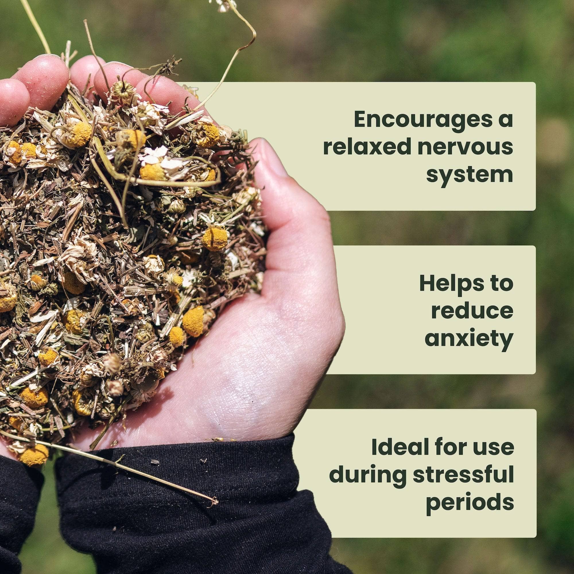 Can help with stress, tension, anxiety and nervousness helping with a good nights sleep. Chamomile also helps with minor digestive problems, wind, bloating & colic.